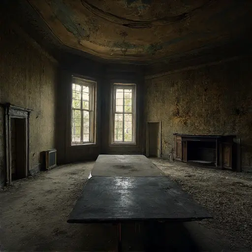 Silvertree House, a massive, turreted structure of grey granite, was built in the late 1880s for Mrs. Agnes Prentiss, a wealthy, eccentric widow. The house’s historical beauty lies in its imposing, almost fortress-like design, reflecting the owner’s intense desire for privacy. Prentiss lived there for less than five years before her sudden death in 1893. The quiet unease arises from the property’s subsequent legal fate: the estate immediately fell into a bitter, protracted legal battle over her final will, which was formally ruled disputed and then simply vanished from court records. The house was sealed by court order, preserving it in an eerie state of arrested decay, its expensive furnishings left untouched as the legal contest stalled indefinitely.