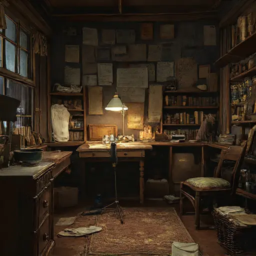 Alderyn Mave Thrennisholm, a tutor of household arithmetic and reading fluency, lived here with her younger cousin Leovar, an apprentice book-press hand whose wages came sporadically. Alderyn fashioned the ledgering niche into a careful world: slates stacked by challenge level, pencils trimmed evenly, quills sharpened, practice slips sorted into neat paper bands. She walked the same half-circle before each session, murmuring numbers to steady her thoughts. As Leovar’s hours dwindled and Alderyn’s joints stiffened from the cold, their income thinned. Lessons grew scarce. Ink rims dried. Pages waited uncorrected until their corners curled. Her routines sagged, losing definition one small gesture at a time, mirrored precisely by the niche around her.