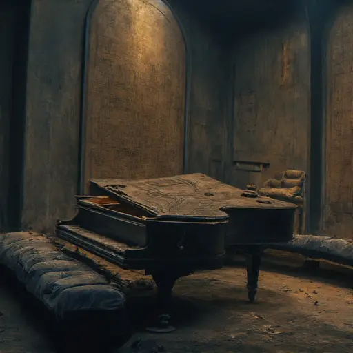 Musician Master Sonus Vacuum was last heard working in his chamber, followed by a sudden, intense sound of heavy wood and metal tearing (from the piano and the oscilloscope) and then immediate, profound silence. He did not leave the manor. The next morning, the chamber was cold, the Frequency Chamber sealed, and the man was gone. No body was found, and the only evidence was the singular, physical alteration to his final philosophical work.