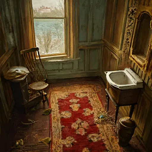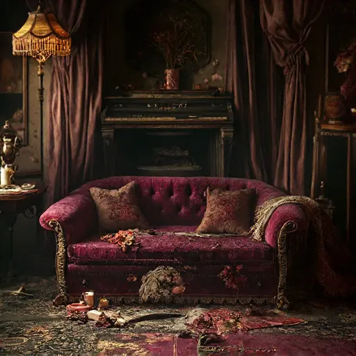 The parlour of Thalverene Wyckerlune House holds the softened weight of a routine that didn’t break but thinned until nothing remained to steady it. A faint scent of cooled tea and wool brushed against lamplight lingers above the idling furniture. Cushions preserve the impressions of quiet evenings that once arrived predictably, then less often, then not at all.