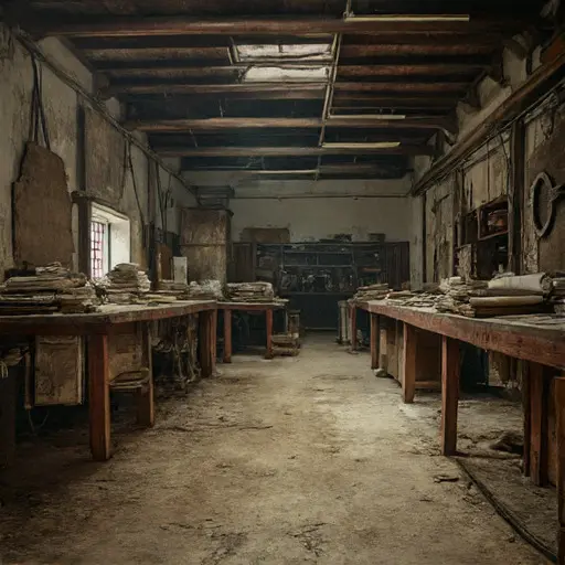 A slip of paper lies beneath a protractor: “Hold until payments confirmed.” Payments never arrived. Corbett Manor stands abandoned indoors, its map room intact, its capital calculated, and its hidden wealth suspended between charted intent and silence.