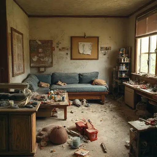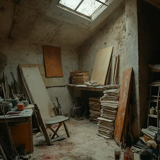 The final note on the drafting table reads: “Check invoices Friday.” Friday passed unheeded. Brushes remain stiff, sketches unfinished, and the art studio sits silent, its notes, pigments, and modest value abandoned among the dust.