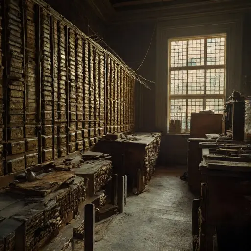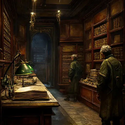 The banking chamber itself shows no sign of forced abandonment. Instead, there are signs of procedural suspension: stamps left uncapped, ink wells still half-full, and correspondence sorted but never dispatched. A final audit sheet lists discrepancies that were never signed off.