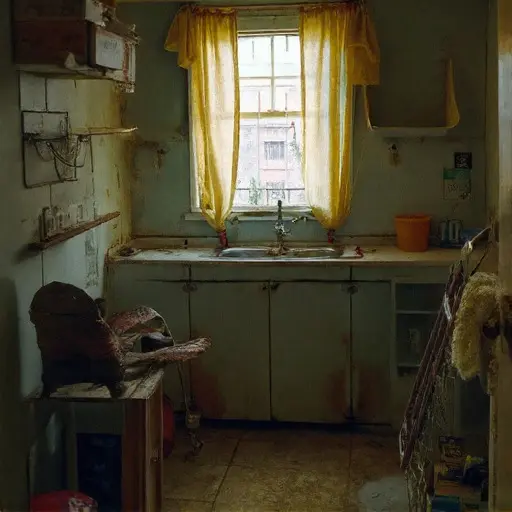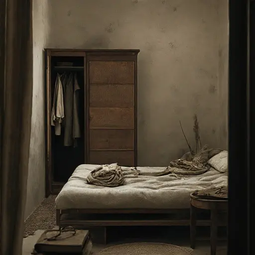 The house remains closed and silent, preserving the final routine of work that simply stopped.