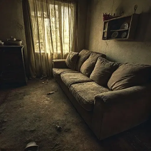 The Ibrahim flat, once valued around $146,000, holds its quiet history in the abandoned entry hall. This narrow space appears to have been the place where daily wages were emptied from pockets and counted before the day truly ended. Now the bench, basket, and scattered receipts sit untouched, the routine abruptly broken.
