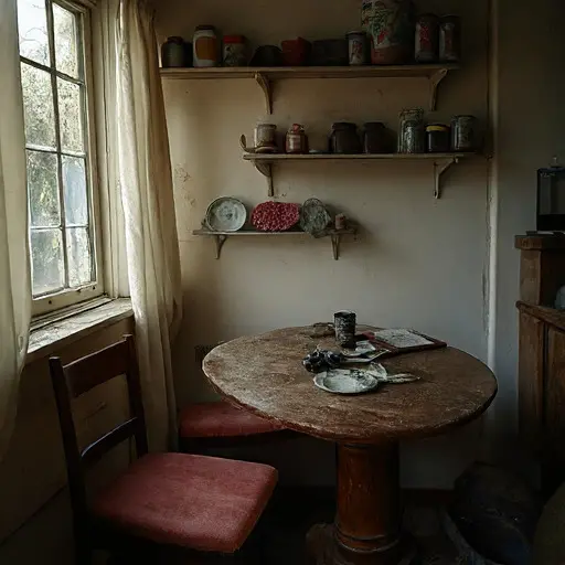 Rafael’s daily habit was methodical: after selling herbs in the market, he counted wages, stored coins in the pouch, and returned tools and herbs to their place. The pantry nook served as both workspace and record-keeping corner.