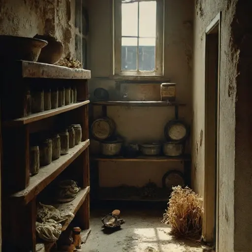 The Costa loft, valued at $148,000, preserves the final wages tucked into a pantry nook. Dust blankets jars and the cloth pouch, freezing the last traces of a small daily income.