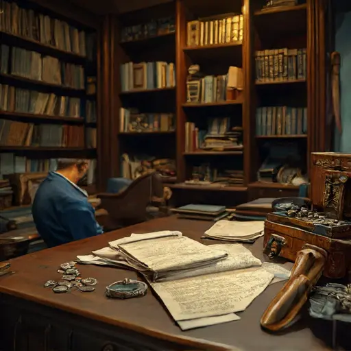 Seven traces define him: a gavel worn smooth at its handle; catalogues annotated with shifting reserve prices; a ledger noting “unsold lots carried forward”; a pocket notebook listing private bids never recorded officially; a broken spectacle lens resting atop valuation sheets; correspondence marked with delayed consignments; and a recurring marginal note—hold item for improved market conditions.
