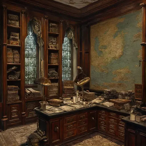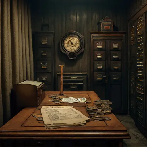 Seven traces define him: a brass stamp worn smooth from constant use; a ledger marked with conflicting duty rates; a drawer of confiscation notices never issued; a teacup ring staining a critical tariff page; correspondence bearing multiple official seals but no final authorization; a locked cabinet containing disputed goods; and a repeated marginal note—await revised directive from central office.