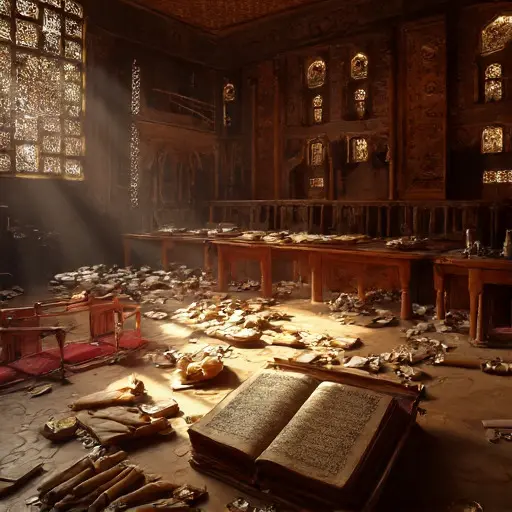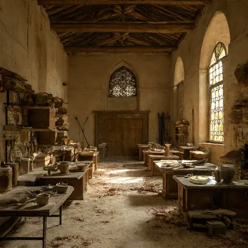 By 1912, colonial reforms disrupted traditional commissions, redirecting patronage to state printing presses. Manuscript orders dwindled; pigment imports became restricted. The chamber preserves this halt: scrolls unrolled yet untouched, gilding incomplete, ledger entries ending mid-year. Some manuscripts may have been distributed quietly; most remain aligned and documented, their fortune recorded yet unrealized.