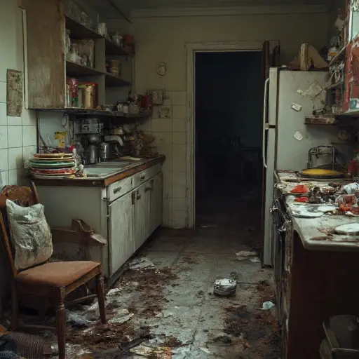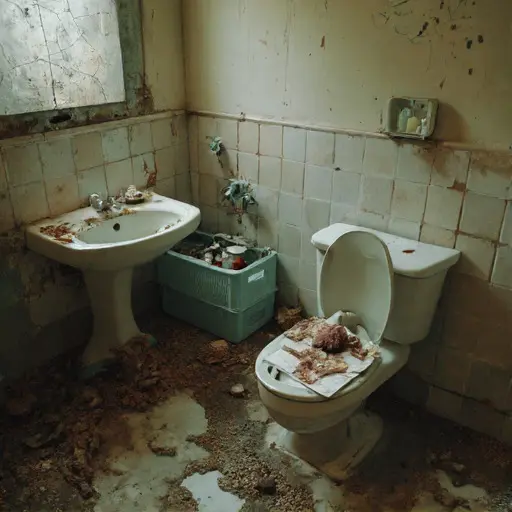 The flat stands silent and deteriorating, its rooms filled with abandoned debris, and the hidden dues left unresolved where they were last counted.