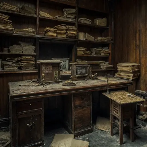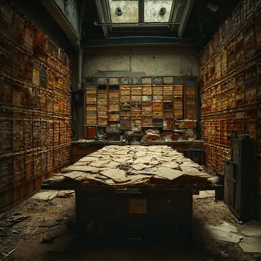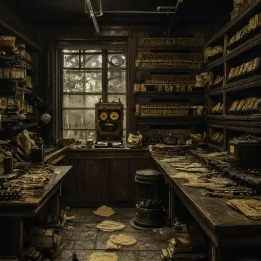 Seven traces define him: a telegraph key frozen mid-press with oxidized contacts; a ledger of coded financial messages marked “awaiting reply confirmation”; a spool of transmission tape unravelled across the floor; correspondence referencing delayed inter-city wire relays; a brass signal indicator stuck between states; a drawer of unsent telegram drafts; and a recurring marginal phrase—transmission acknowledged but not financially reconciled.