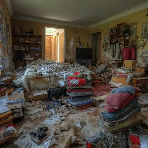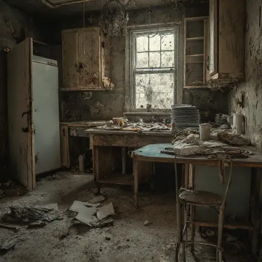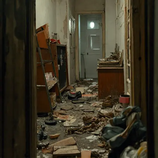 The flat stands silent and deteriorating, its cluttered hallway hiding records of hidden tariffs that were never resolved.