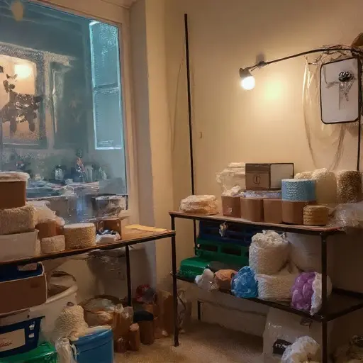 Each evening he worked from the folding desk, scanning barcodes and preparing packages. Boxes moved from shelf to desk, then to the doorway for courier pickup. The garage office shows careful habits—products arranged by type, quantities listed clearly, and notes pinned to the whiteboard.