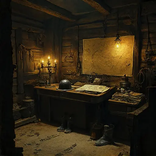 Seven traces define him: a lantern left on the desk with its wick burned down; a ledger marked “unverified shafts”; a drawer of inspection tags never assigned; correspondence requesting urgent structural confirmation; a cracked compass used for underground direction mapping; a stack of tunnel sketches left without final markings; and a recurring margin note—final report pending full descent verification.