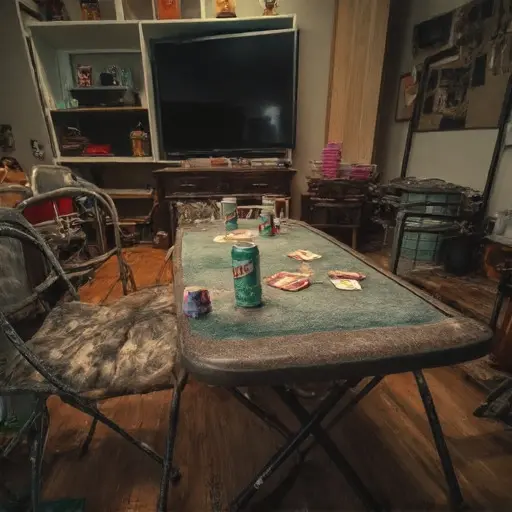 The apartment stays modest and quiet, its game room ready for players who never returned, the hidden winnings still waiting beside the cards and chips.