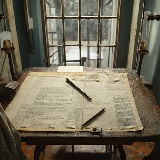 Seven traces define him: a brass gallery key left resting beside an unfinished room plan; a catalog ledger marked “uninstalled exhibition items”; a drawer of handwritten placards never mounted; correspondence requesting delayed artifact deliveries from distant provinces; a cracked magnifying lens used for artifact inspection; a stack of visitor registers left unsigned at the final entry; and a recurring margin note—final gallery arrangement pending object verification on arrival.