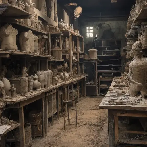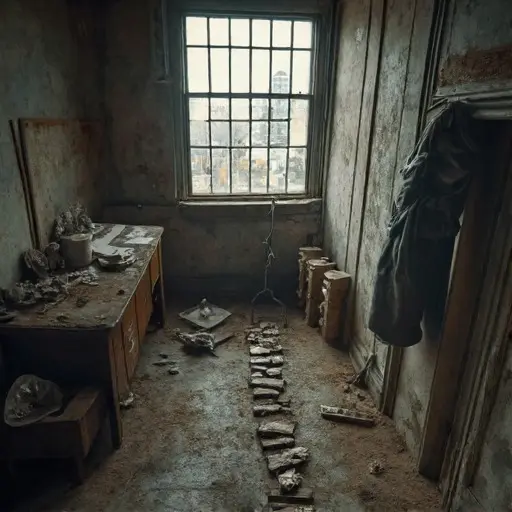 Seven traces define him: a sculpting chisel embedded mid-line in a wax figure; a ledger marked “incomplete cast register”; a drawer of clay impressions never transferred into bronze molds; correspondence requesting urgent delivery of metal alloys; a cracked measuring caliper used for anatomical scaling; a stack of statue sketches left without final approval marks; and a recurring margin note—final form pending complete metal fusion and cooling cycle.