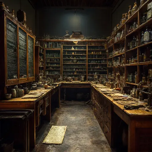 Seven traces define him: a glass stirring rod left submerged in an unfinished solution; a ledger marked “incomplete formula registry”; a drawer of labeled chemical vials never mixed into final compounds; correspondence requesting urgent replication of a pain-relief preparation; a cracked balance scale used for micro-dosing; a stack of prescription slips left unsigned; and a recurring margin note—final formulation pending full reaction stability under controlled conditions.