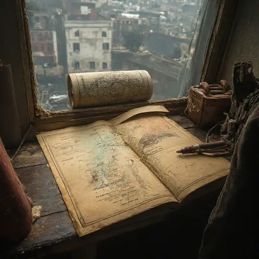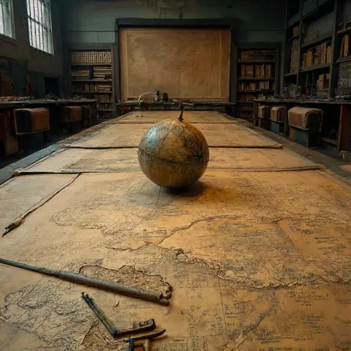 Seven traces define him: a brass divider frozen mid-arc over an uncompleted coastline; a ledger marked “incomplete atlas sections”; a drawer of expedition notes never transferred into official maps; correspondence requesting urgent confirmation from field survey teams abroad; a cracked magnifying lens used for terrain engraving; a stack of regional maps left without final boundary definitions; and a recurring margin note—final cartographic confirmation pending return of all expedition parties and cross-verification of field coordinates.