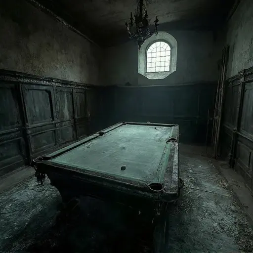 The Billiards Room, designed for evening entertainment and robust social interaction, is now steeped in an eerie stillness, its emptiness more profound than the sum of its decaying parts. Every remaining object stands as a silent witness to a life that ended in self-imposed, irreversible isolation and the bitter savor of simmering, unchecked resentment.