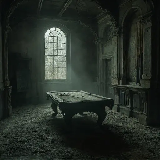 The Billiards Room, designed for evening entertainment and robust social interaction, is now steeped in an eerie stillness, its emptiness more profound than the sum of its decaying parts. Every remaining object stands as a silent witness to a life that ended in self-imposed, irreversible isolation and the bitter savor of simmering, unchecked resentment.