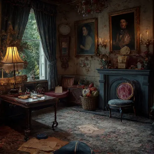 The parlour’s air feels weighted—softened by dust, edged with the faint tang of metal and dried ink, and lined with the slow collapse of old upholstery. Brackenfell House bears no sign of hurried departure. Instead, it suggests routines carefully lived, then gently abandoned, leaving objects arranged as if awaiting a return that never came.
