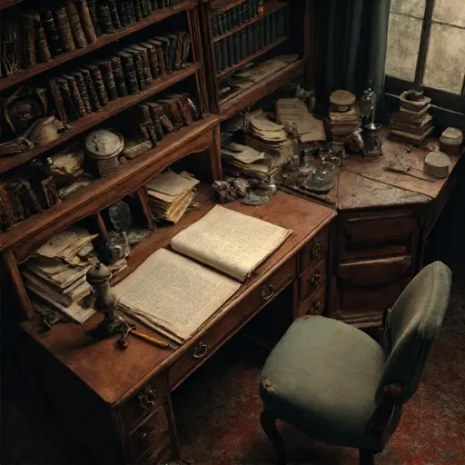 Silas Rowan Brackenfell, a municipal accounts supervisor known for his steady habits and understated presence, lived here with his wife, Margaret, and their son, Edwin. Silas’s work demanded precision—tallies aligned, correspondence checked twice, ledgers sorted by week—and these rhythms echoed in the home he kept. In the Study, his handwriting fills page after page in neat, upright order; invoices remain bundled by string; receipts are pinned in careful rows.