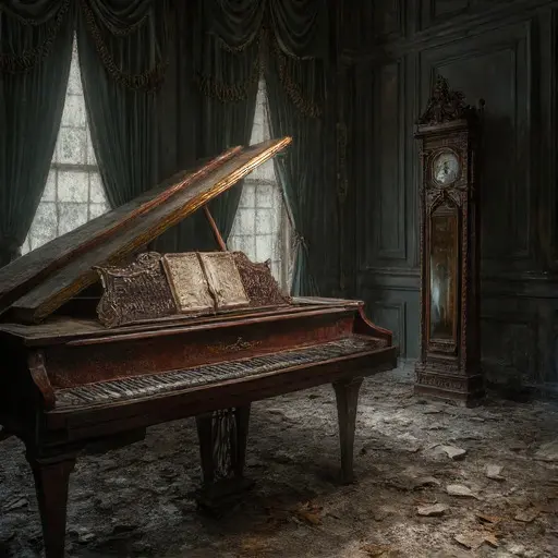 Sonus-Scroll Keep was the secluded domain and elaborate workshop of Maestro Julian Thorne, a brilliant but pathologically obsessive composer and musical theorist of the late 19th century. His professional life demanded the meticulous crafting of melody, the flawless harmonization of notes, and the pursuit of absolute musical perfection—a composition without flaw, dissonance, or error. Personally, Maestro Thorne was tormented by a crippling fear of discord and a profound paranoia that all emotional expression was fundamentally chaotic and unharmonious. He saw the Keep as his ultimate score: a space where he could finally write and play a single, perfect, final chord that would ensure his existence ended in a state of unassailable, eternal harmony.
