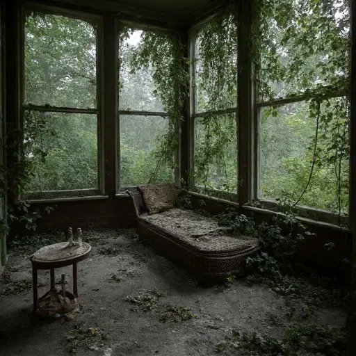 The atmosphere inside Sablewood Crest was a museum of forgotten air—cold, still, and tasting faintly of dry rot and old paper. Upon entering the Main Hall, the overwhelming impression was not of space, but of confinement. Every surface, from the towering grandfather clock that had long since stopped at quarter past midnight, to the heavy, moth-eaten velvet drapes, was cloaked in an unbroken, velvety layer of dust, suggesting decades of absolute stillness.