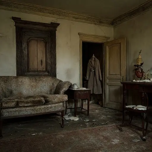 The receipt records a minor expense: replacement washers, chalk, twine. Nothing urgent. Yet later pages in the ledger show irregular gaps, inspections skipped, numbers trailing off. A pipe diagram is pinned crookedly, its corner torn. The pump handle in the scullery is locked in place, as if forced once and abandoned. No tools are missing. No valuables taken. The decline was not sudden panic but fatigue—pressure from unnoticed faults, complaints unanswered, responsibility compounding quietly.