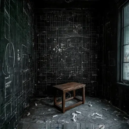 The solitary resident and architect of Chalkbound Shroud was Professor Elwin Cade, a brilliant, but profoundly isolated, mathematician and logician. Professor Cade’s life was defined by a singular pursuit: the creation of a perfect, all-encompassing logical grid—a formula that could predict and explain every human decision and natural event. After his work was ridiculed by the academic community, he retreated to the mansion he built in 1895, turning his obsession inward. He sought to prove his theory by mapping the patterns of his own isolated existence within the house’s strange dimensions.