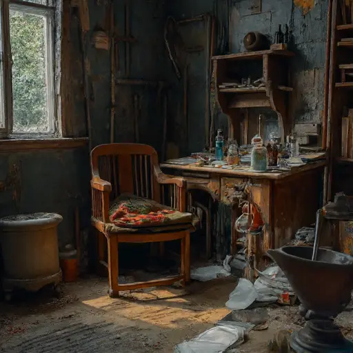 The house remains abandoned, vials, pipettes, and fragrance tools awaiting hands that will not return, the quiet heavy with unfinished artistry and lost mastery.