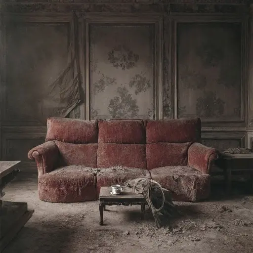 The mansion’s silence was absolute, amplifying the small sounds of the structure itself: the creak of settling timbers, the faint, repetitive drip of water somewhere deep within the walls. The house contained a narrative written not in journals, but in the material decay of its fixed objects—furniture, fabrics, and the stubborn persistence of personalized clutter.
