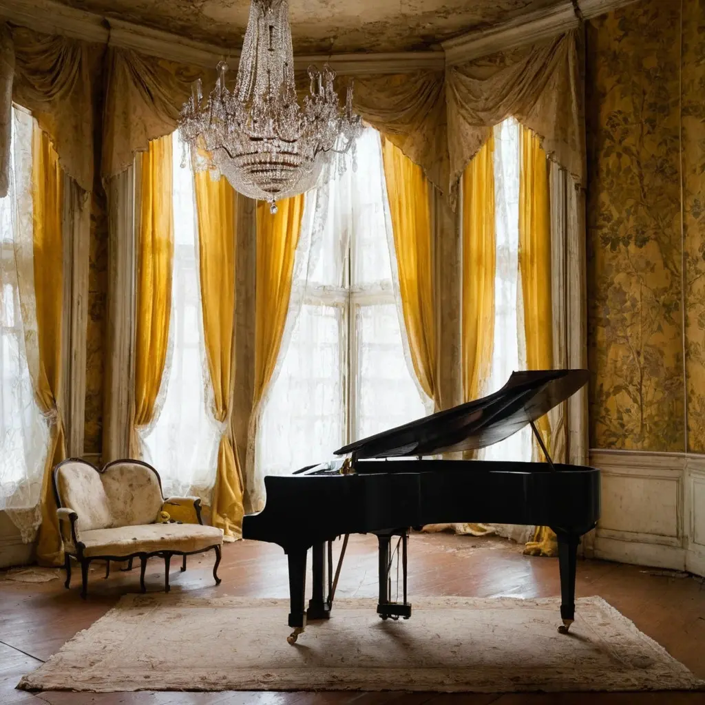 Inside, time has folded in on itself. Curtains hang in tatters, furniture remains where it was last touched, and the faint outline of footprints stains the dust near the piano. Once, laughter filled these halls. Now, only echoes remain.