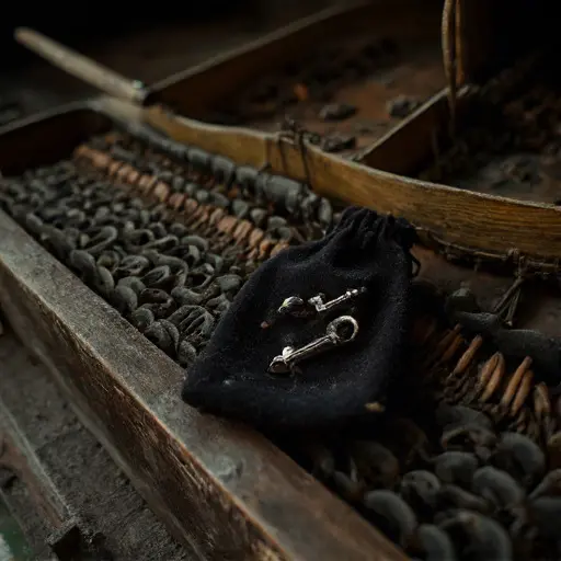 One hammer—the one designed to strike the highest treble note on the keyboard—is snapped cleanly from its hinge and lies broken on the soundboard. The note is permanently silenced. Resting on the polished wood near the broken hammer is a small, heavy, tarnished silver tuning fork. Gilt-Edge Key stands as a monument to impossible artistic perfection, preserving the haunting, eerie silence of a man who pursued the ultimate, unhearable note and found his final, melancholy truth in the permanent cessation of sound.