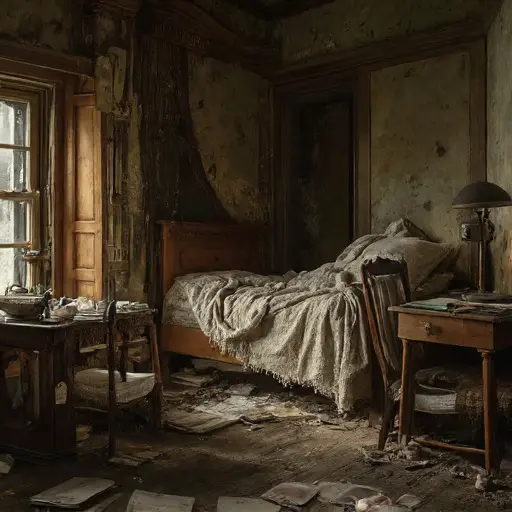 The house remains abandoned, vials and tools frozen mid-creation, preserving the quiet persistence of perfumery interrupted, unresolved, and suspended in hushed neglect, a testament to meticulous artistry left unfinished.