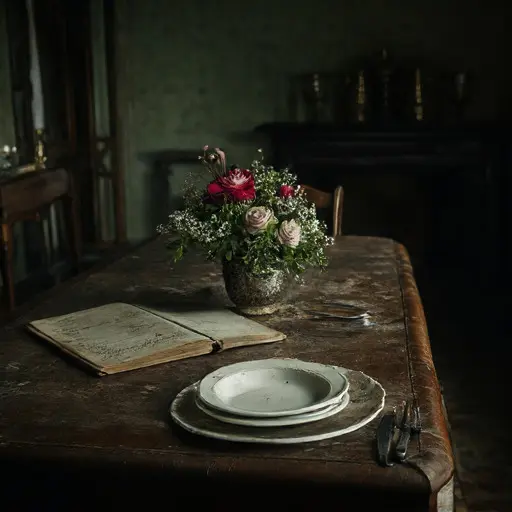 Nothing inside Thornhollow House moves. It doesn’t resist time — it merely refuses to participate. The interior stands like a halted ledger entry: paused, unfinished, lacking conclusion.
