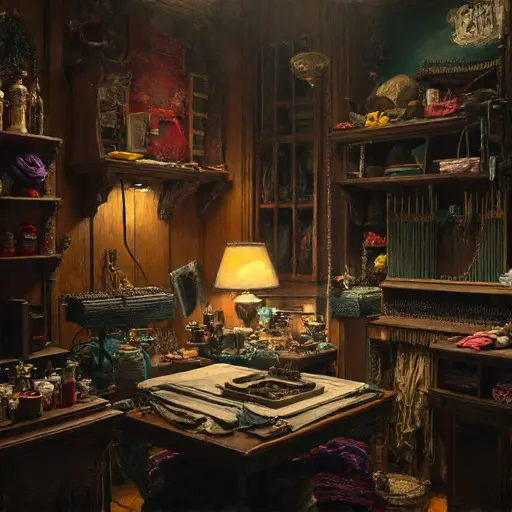 Crossing into the card room, a muted scent of lanolin mingles with old tobacco. The carpet hushes each step, as though guarding a hesitation stitched into the stillness. Nothing indicates abrupt departure, yet every thread and shuttle seems caught in a quiet argument with the past—careful work interrupted before its pattern could steady.