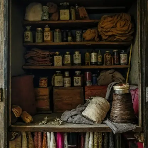 Ewan Callum MacBride, born 1876 in Inverness, wove modest tartan lengths for tailors and traveling peddlers. A woolen wrap from his sister Mairi cushions skeins sorted by shade. Ewan began at dawn stretching warps, spent afternoons threading shuttles, and worked evenings smoothing selvedges beneath the low lamp. His humble upbringing shows in repurposed bobbins and frayed heddles mended with thrift and patience.