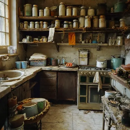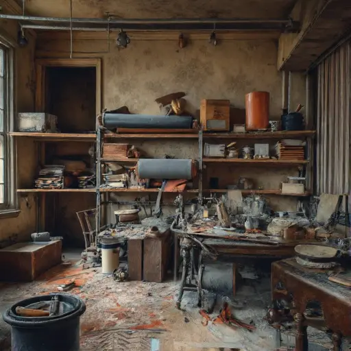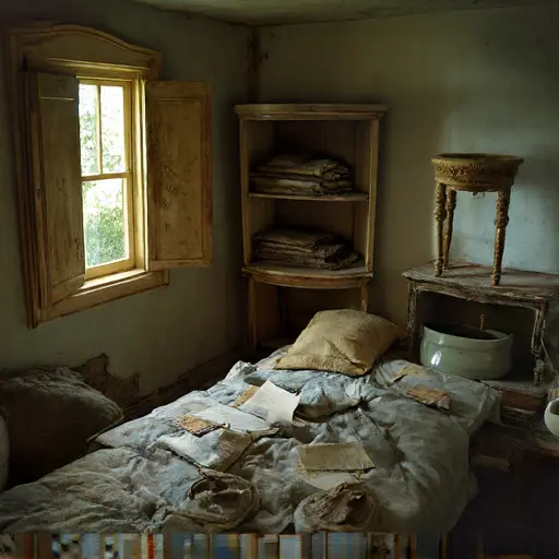 The house remains abandoned, its patterns frozen mid-creation, dust layering over repeated intentions that will never resume, lingering in quiet neglect.