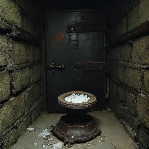 In the center of the room sits a heavy iron brazier, now filled with a packed, uniform mass of fine, white ash. There are no identifiable scraps, no residual markings—total obliteration. Tucked into a crevice in the stone wall, a single, small, leather-bound book was overlooked. It is not a diary, but a ledger. The final page contains a list of dates and clients, with the very last entry written in faint pencil: “Self-Cleansing. No witnesses. 04.18.1915.”