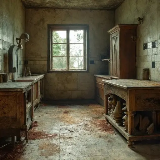 Pendelton Rise was known locally for the excellence of its cuisine, largely thanks to its long-serving resident, Mrs. Harriet Baines, the estate cook who managed the expansive kitchen staff and menu planning for over thirty years. Baines was renowned for her precise budgeting and rigorous discipline in the service wing. She died unexpectedly in 1916 after a short illness, and with the ensuing war and financial difficulties, the main family relocated, leaving the house, and specifically the service quarters, locked and untouched, preserving the exact state of her final domestic command.
