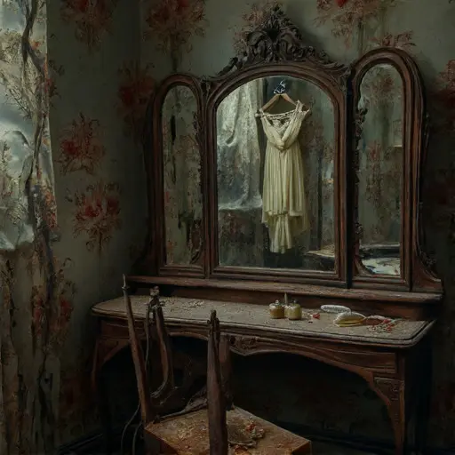 The dressing rooms adjacent to the ballroom were small, intimate spaces of vanity and preparation. Here, the atmosphere was saturated with the lingering, dry scent of old theater makeup and lavender. On a small, dusty table, among scattered hairpins and a broken comb, lay a meticulously preserved costume sketch. It was for the final, most crucial role in the Dance of Retention, a figure called “The Memory.” The costume was simple: a gown of white, translucent silk, meant to make the dancer appear as if they were fading into the scenery. Seraphina’s personal diary, found tucked inside a travel trunk, revealed a desperate final plan: she intended to become the ultimate, permanent “Memory.” She believed that by remaining absolutely still, by becoming one with the silence of the abandoned Victorian house, she would finally conquer her fear of being forgotten. The silk slipper in the studio and the lingering stillness of the Hold suggest she succeeded, her final, unmoving performance preserved forever within the walls of Quincefield Hold.
