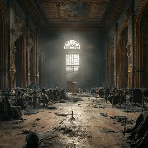 The grand ballroom, intended to be the jewel of the estate, is now a cathedral of decay. Dust lies inches deep, muffling all sound, enforcing the profound, eerie silence that has reigned here for generations. This silence is the lasting legacy of a single, sudden moment of human failure.