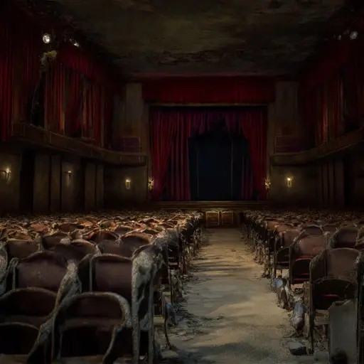 Phantom’s Veil is a house that feels constantly on the verge of performance. Built in a hollow where sound seems to dampen, this abandoned Victorian house is unusual for its central, two-story tall theatrical wing, designed not for social gathering but for dramatic staging. The atmosphere inside is intensely charged yet silent, smelling strongly of dried theatrical makeup, aged velvet, and a faint, acrid whiff of burnt stage powder. The air is stagnant, creating an eerie sense that the last applause has just faded, leaving behind a profound stillness and the heavy weight of unfulfilled drama. The entire structure feels like a massive, preserved stage set.