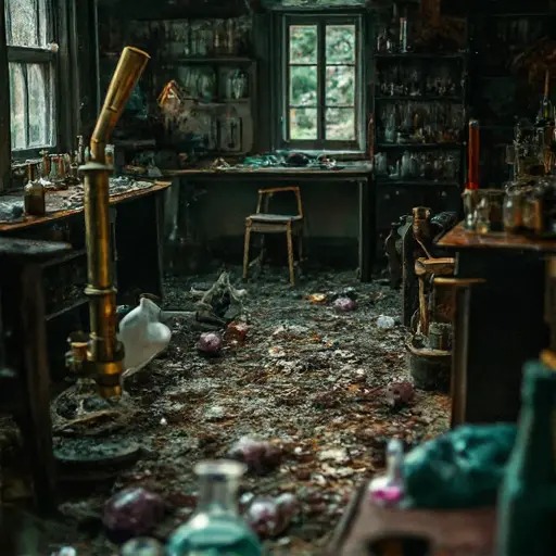 The exposure triggered a total mental breakdown. Arthur, unable to face the public humiliation and the total invalidation of his life’s work, returned to the Laboratory. In a final, deliberate act of professional erasure, he methodically smashed every glass vial, every specimen jar, and every piece of scientific equipment in the room. He then walked into the Conservatory and quietly ingested a powerful poison he used for his most destructive pests.