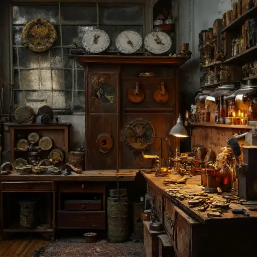 Hendrik’s days may have begun with calibrating escapements by candlelight, followed by meticulous polishing of pivots for wealthy patrons who trusted him to restore their mantel clocks. In the Side Parlour, a pair of ornate Dutch longcase chimes stand silent, pendulums wrapped in linen bands to preserve alignment. His temperament seems patient, even reverent—moving through time as though it were a fragile material he could coax into order through diligent touch.