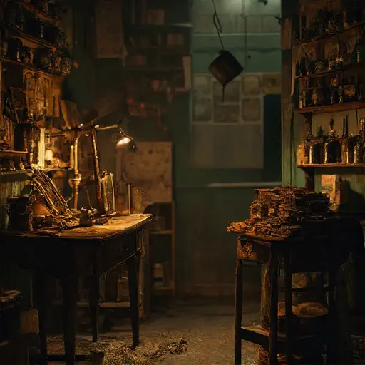 Returning to the Clockmaker’s Workshop, tension gathers around a single gear lying just outside the usual tool arc. Its teeth bear a faint scoring, as though he attempted a correction that went subtly wrong. The regulator cabinet’s pendulum rod shows a smudge where it was steadied—or hesitated over. A half-empty vial of oil stands uncorked, its dropper resting at an odd angle, hinting at interrupted focus.