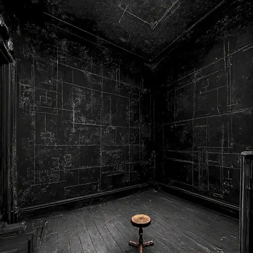 The deepest, smallest room in the house is the “Room of Failed Synchronization.” This chamber, located off the main study, has walls painted entirely black, and every surface is covered with dense, overlapping white chalk equations and diagrams. The focus keyword, abandoned Victorian house, is here obscured by sheer graphical information.